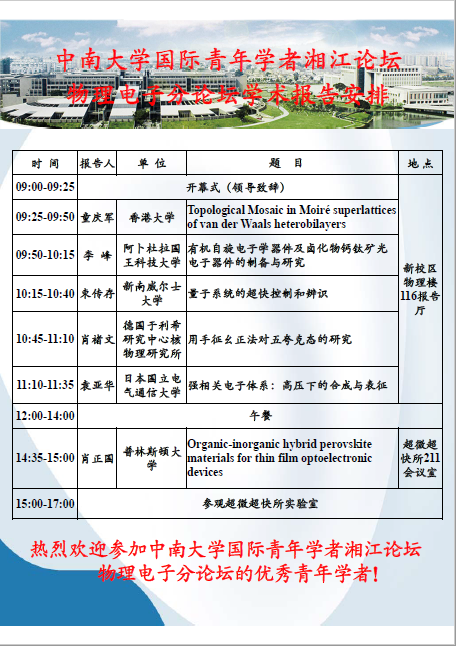 william威廉亚洲官方国际青年学者湘江论坛 物理电子分论坛学术报告安排