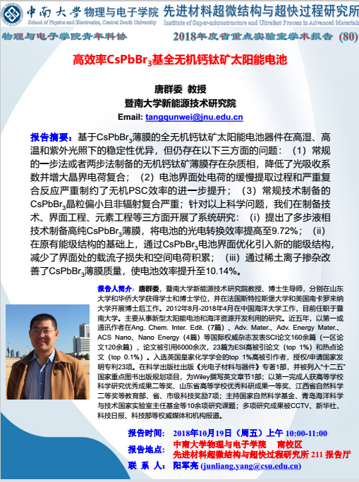 高效率CsPbBr3基全无机钙钛矿太阳能电池
