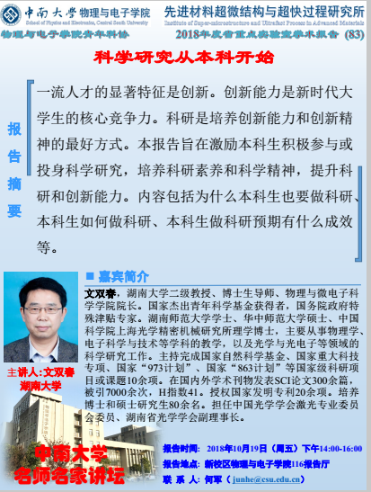 名师名家讲坛 科学研究从本科开始