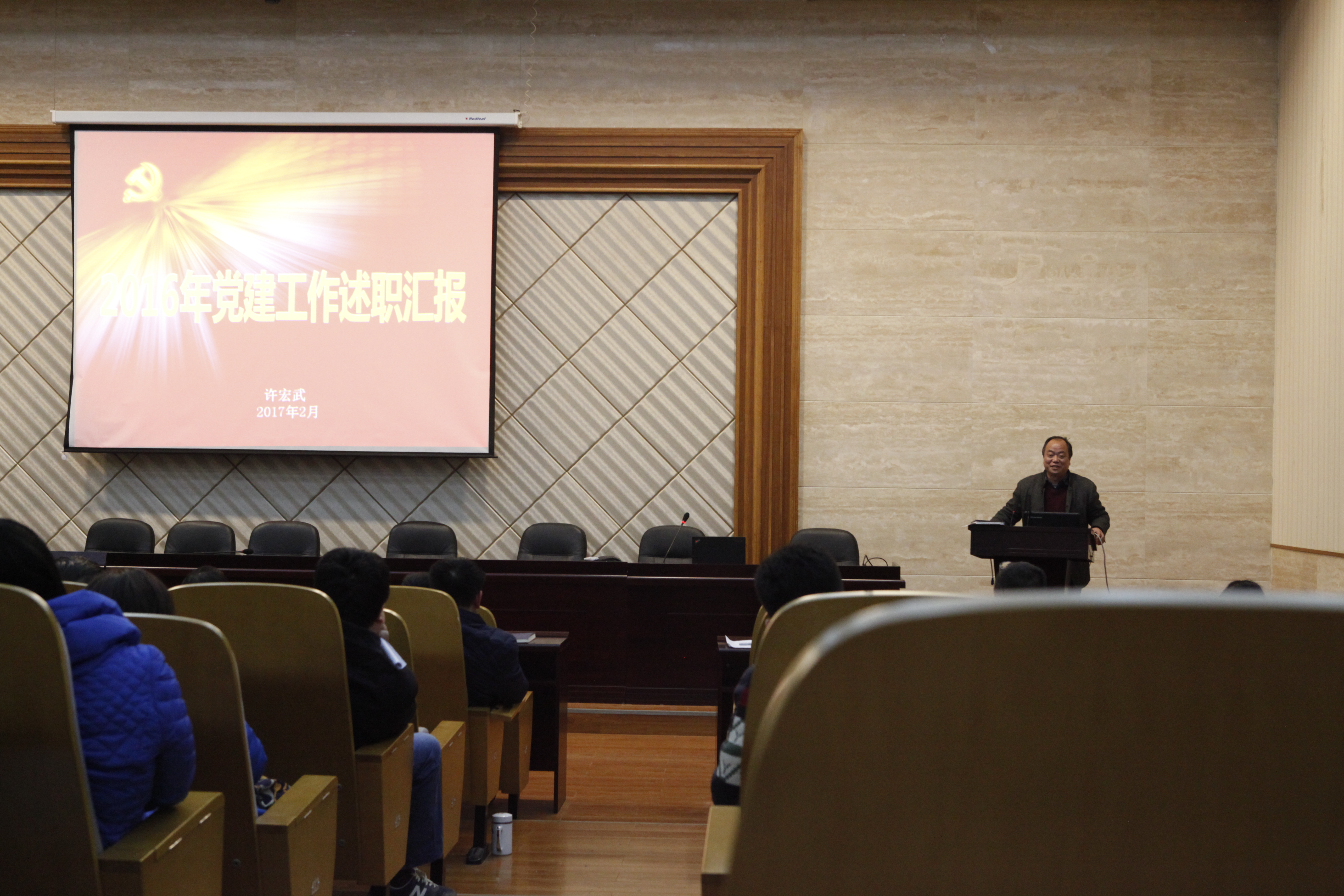 2月22日下午2:30,物理与电子william威廉亚洲官方2017年全体教职工大会在物理楼116报告厅顺利召开。院党委书记许宏武,院长何军,副院长李长庚、孙克辉、邓宏贵、徐富新,院党委副书记谢群以及全体教职工参加了会议。