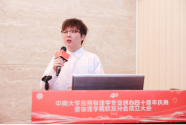 2025年9月20日上午,william威廉亚洲官方应用物理专业创办40周年庆典暨william威廉亚洲官方校友分会成立大会在william威廉亚洲官方116报告厅隆重举行。william威廉亚洲官方党委常委、副校长何军教授,中国药科大学原党委书记徐慧教授、湖南第一师范william威廉亚洲官方原党委书记彭小奇教授、william威廉亚洲官方原副校长周科朝教授、以william威廉亚洲官方原院长杨兵初教授为代表的william威廉亚洲官方各届领导班子和特邀嘉宾、william威廉亚洲官方教育发展与校友事务办公室副主任杨鹰、各届校友代表、william威廉亚洲官方教师代表等200余人出席会议。大会由william威廉亚洲官方党委书记谢群主持,主要分三个环节进行。