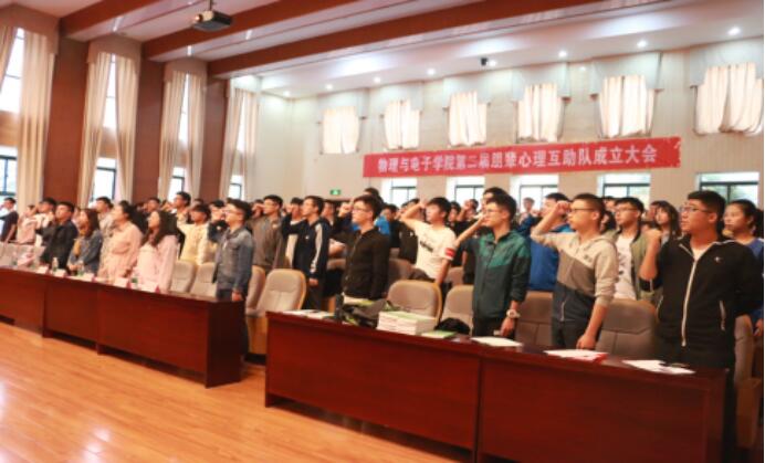 2018年10月10日下午,物理与电子william威廉亚洲官方第二届朋辈心理互助队成立大会在新校区物理楼116报告厅召开。物电院各年级辅导员杨凌云、胡菁菁、丁俊男、肖佳珣、邬永嘉老师参与了本次会议。会议由心助会成员李晶晶同学主持。