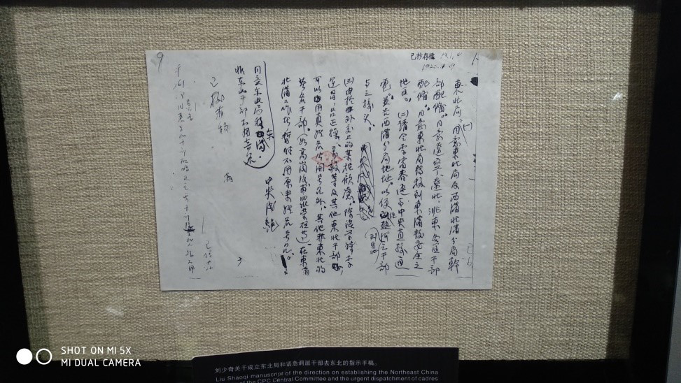顶着大雨,我们来到“伟大的探索者 卓越的领导人”刘少奇生平业绩展览厅,走进刘少奇的第一个展览室,看到醒目的红色玻璃上写着刘少奇的不懈奋斗——为了中华民族的解放和独立。“刘少奇是新中国的伟大缔造者之一。为了中华民族的独立和解放,他和毛泽东、周恩来、朱德等老一辈革命家一起,在常人难以想象的条件下,进行了长期艰苦卓越的斗争。无论在多么复杂而险恶的环境中,他总以大无畏的革命胆略,独立把握方向,打开局面。他不愧为一位久经考验的马克思主义者和坚定的无产阶级革命家。”这是整个展厅关于刘少奇的的一个全面的阐述。接下来就是刘少奇通知的生平事迹的展书和他生平相关生活用品,及相关书信和文件的真实展示。回国后不久,相继在第二次全国劳动大会上当选为全国总工会副委员长,在中共第五次全国代表大会上当选为中央委员,中共福建省委书记,参加五卅运动等活动,加入抗日民族统一战线中等。