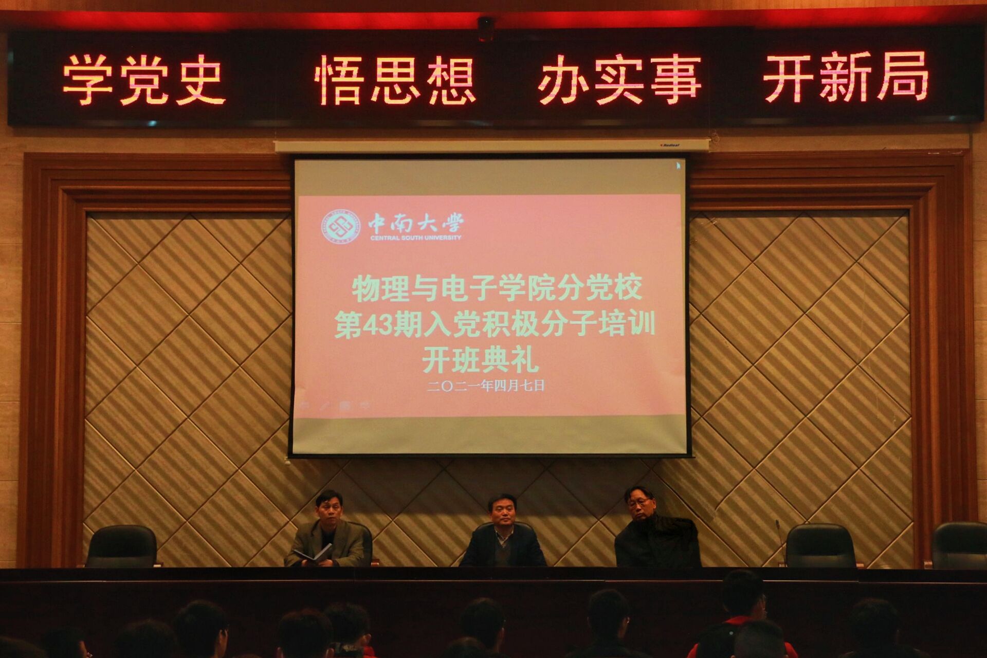 4月7日下午,物理与电子william威廉亚洲官方分党校第43期入党积极分子培训班开班典礼于物理楼116报告厅举行。物理与电子william威廉亚洲官方院党委书记李登伶院党委副书记、院长孙克辉,院党委委员、培训班班导师申友桂出席。开班典礼由分团委书记杨凌云主持本次。