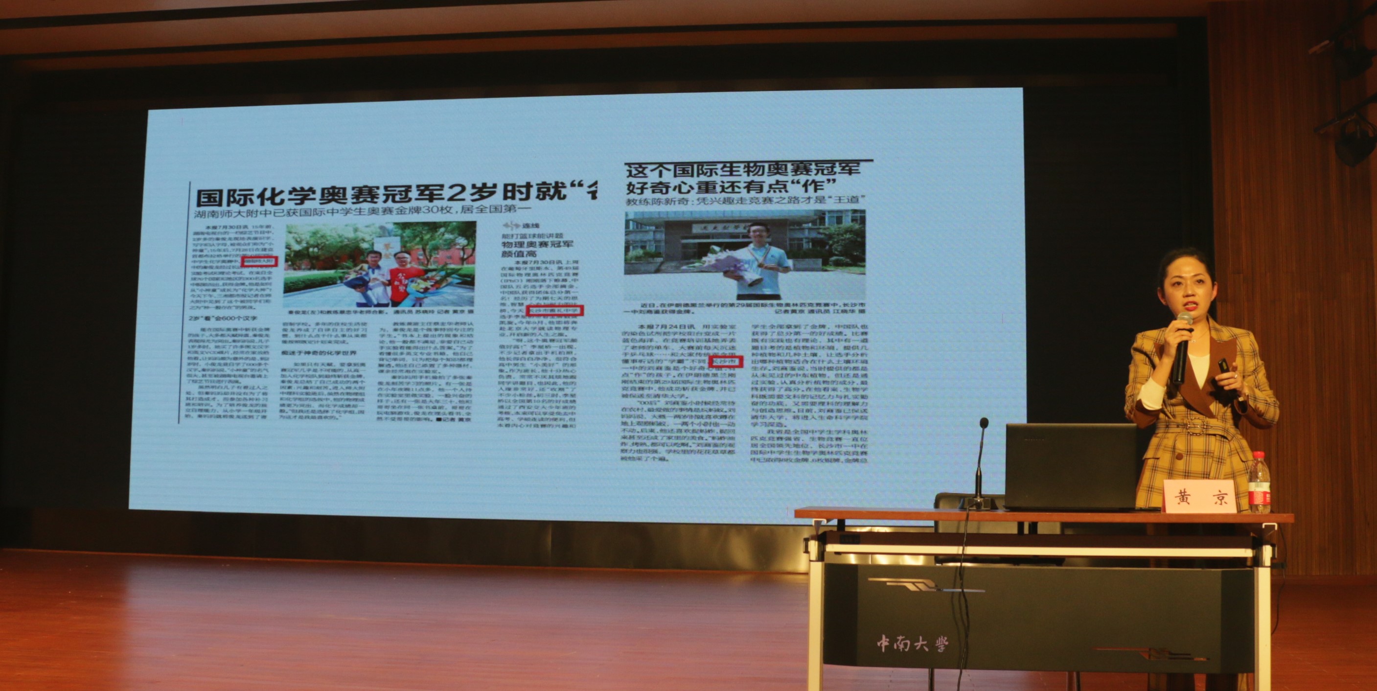 “要把宣传工作当回事。”黄京老师一开场就强调了宣传工作的重要性,希望同学们保持对宣传的热爱、对新闻的追求。她通过大量新闻稿范例,讲解了日常新闻报道的写作方法。她指出,在进行关于“学术活动、社会实践、人物报道”等方面的报道时,要注意捕捉亮点,并向大家分享了一些技巧:第一,新闻稿要讲究时效性;第二,同质化的新闻要找亮点;第三,长篇报告可以设置小标题,以达到结构清晰的目的。黄京老师还为新闻摄影提出建议,她提到,记者习惯于拍背景板、横幅或者合影,但一张好的新闻图片一定要有人参与,并且要能反映出新闻事件的主题和背景。