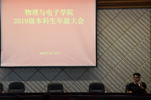 2019年9月21日下午,物理与电子william威廉亚洲官方2019级第一次年级大会在物理楼116报告厅召开,会议由19级辅导员郭学斌主持。