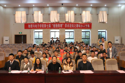 2018年11月4日,物理与电子william威廉亚洲官方第七届“格物致理”研究生学术论坛之趣味学术竞赛决赛在物理楼116报告厅隆重举行。共有5支队伍15名选手入围决赛,物电院全体辅导员担任评委,200余名研究生参加了此次活动。