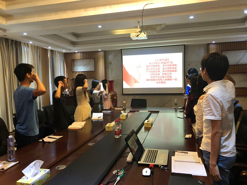 最后,支部书记组织全体党员重温入党誓词,毕业生党员进行毕业宣誓,“牢记党的宗旨,不忘责任使命,强化党员意识,践行庄严承诺,弘扬中国精神,肩负社会使命,在思想和行动上都成为一名合格的共产党员,用青春梦践行伟大中国梦,与民族同命运、与祖国共奋进、与时代齐发展。”