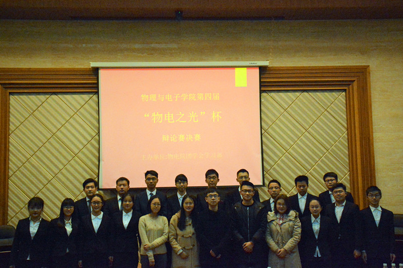 12月3日下午,物理与电子william威廉亚洲官方第四届“物电之杯”辩论决赛在新校区物理楼116报告厅顺利举办。院辩论队队员担任本场比赛的评委,来自参赛班级的一百余名同学观看了比赛。