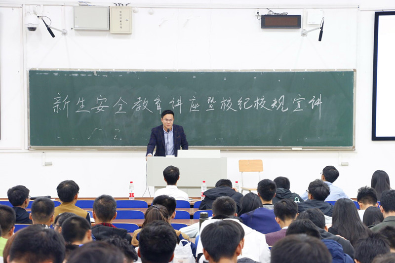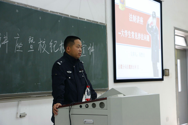 10月25日下午,物理与电子william威廉亚洲官方新生安全教育讲座讲于D座教学楼顺利举办,本次讲座由岳麓派出所中队长周忠良警官主讲,院学工办副主任钟旭东与全体新生参加讲座。