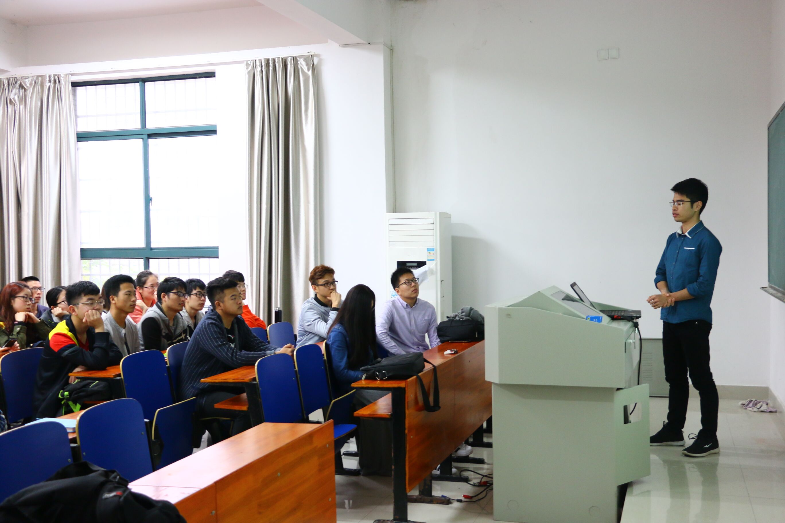 9:30,报告会随着钟老师对封总的介绍缓缓拉开序幕。封雨鑫经理用大学时代、初入职场、与大族同成长三个不同的时期来进行报告。首先,封雨鑫讲在大学时代,他向同学们描述自己努力奋斗过也荒废虚度过,拿过奖学金但也挂过科。但他一直喜欢动手,能够学以致用,并用幽默风趣的语言劝告学弟学妹们要在大学期间打好学业基础以及培养对技术浓厚的兴趣。紧接着,封总讲述了自己初入职场,由于自身对数控技术的爱好,选择加入大族激光而放弃华为的决定。“刚加入公司的时候,公司初期连续亏损,人员大量流失,研发部门只剩2人。技术断层、青黄不接、产品问题不断。” 但在自己和同事们的努力下,公司顺利度过危机。封雨鑫再次告诫同学们初入职场要多付出,加强团队的沟通与协作,不断地学习、积累和进步。在与大族共成长时期,封总从组建团队、开始创新讲到公司不断壮大,走上良性发展的道路。最后,封雨鑫指出,必须要有高度的责任心、扎实的专业素养、长期刻苦耐劳的工作作风才能做一个合格的职业人。