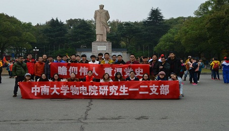 2015年11月29日上午,物理与电子william威廉亚洲官方研究生第一党支部和第二党支部组织全体党员赴岳麓山东方红广场瞻仰毛泽东主席雕像,通过深切缅怀老一辈革命家的丰功伟绩,重温党的历史,进行爱国教育。