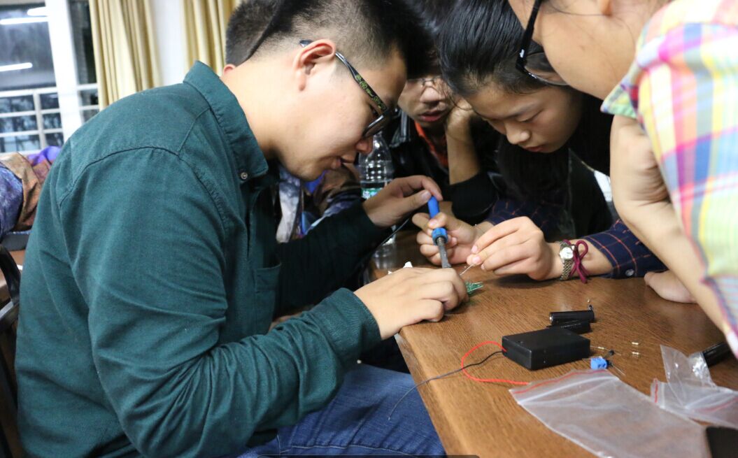 团队成员史正则向同学们详细讲解了参加电设所需掌握的知识点和竞赛中要面对的问题,并分析了《C语言程序设计》、《数字电子技术》、《模拟电子技术》及《数字信号处理》等课程在电子设计竞赛中的重要性。讲述完毕,他向同学们展示了他们在此次竞赛中获奖的作品,建议欲参赛的同学提早准备、夯实基础。