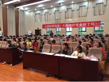 马晓虹老师结合自己多年从事心理咨询的经验,针对当代大学生的心理状况,给适应新环境的新生们提出了一系列建议。她说,大一新生在面对全新的、富有挑战的大学生活时,难免会感到有压力、手足无措、迷茫、乃至空虚。然而,“危机便是转机!”她认为,这些负面情绪未尝不是件好事,正是这些不和谐的情绪提醒着大家去改变现状,从而使得大家能够更好的适应大学生活!