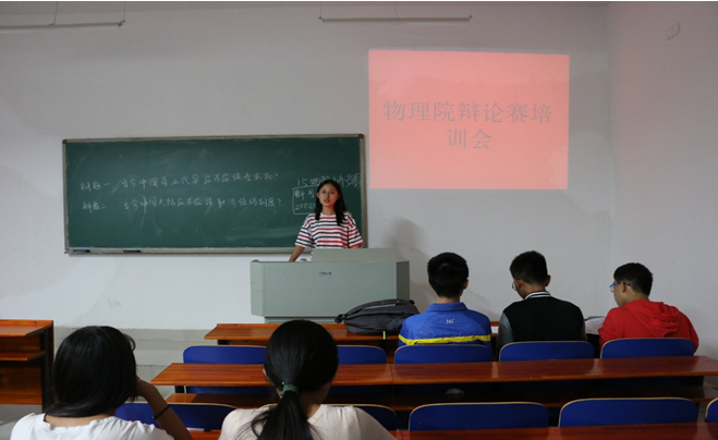 10月26日晚21时,物电院于物理楼114教室举行了辩论赛赛前培训,辩论全体成员参加了本次培训会。培训会由副队长胡梦黎的主持。首先,队长李岳宸对辩论赛进行了简单的介绍,指出了辩题的三个种类:价值类辩题、政策类辩题、趣味性辩题。并针对辩题提出了破题技巧,告诫辩论队员们要抓住辩题内涵后深入进行讨论,不能只局限于辩题表面。接下来他又对辩论的四个辩位进行了简单说明,并给队员们指出了各辩位辩手的职责和作用。最后他对辩论赛赛制进行了简单介绍,以自身经历为例,提醒队员比赛时勿犯错误。