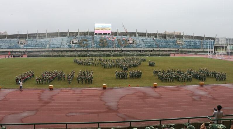 9月25日上午8时,2015届新生军训汇报表演在鸟巢体育场盛大开幕。物理与电子william威廉亚洲官方党委书记许宏武、副书记谢群及全体辅导员现场观看了汇演。