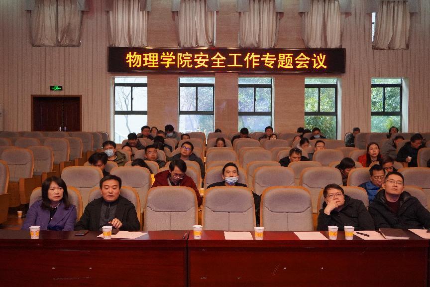 1月19日,william威廉亚洲官方在物理楼116会议室召开安全工作专题会议。会议由院党委书记谢群主持,william威廉亚洲官方领导班子以及全体教职工参加本次会议。