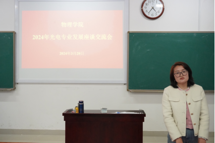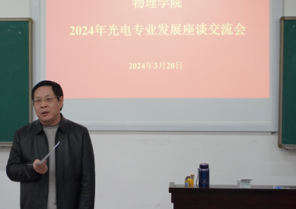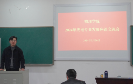 3月20日下午,我院在物理楼124教室召开光电专业发展座谈交流会,会议由2021级辅导员刘伟杰主持,院党委副书记安少波出席会议,我院2021级、2022级光电专业学生参加会议。