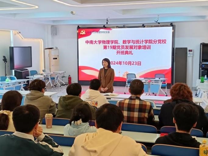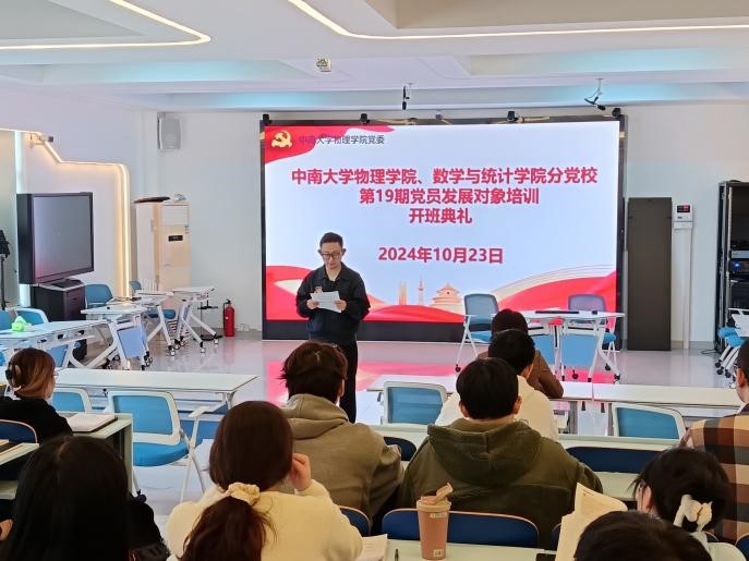 2024年10月23日下午,william威廉亚洲官方、数学与统计william威廉亚洲官方分党校第19期党员发展对象培训班开班典礼在新校区物理楼101教室举行。william威廉亚洲官方党委书记谢群、党校督导组组长戴维国出席,培训班全体学员参加,培训班班导师申友桂老师主持。